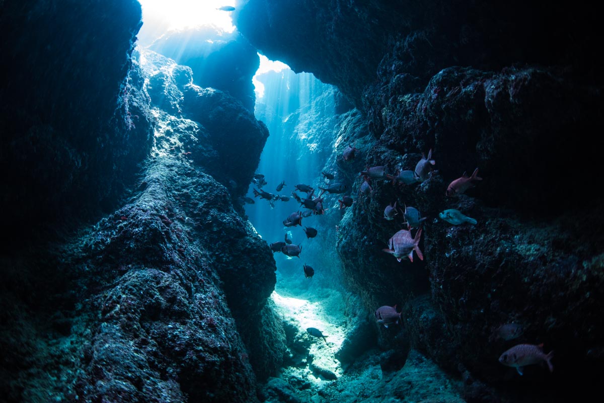 沈没船は魚影の濃さが魅力で、青の洞窟系は光の差し込みを利用した写真撮影に最適です。
